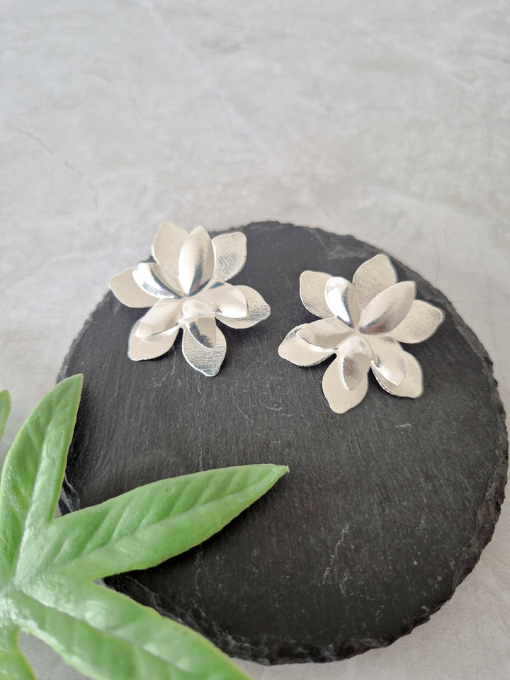 Los aros amistad son pura luz. Su diseño en forma de flor con volumen y su baño en plata los convierten en ese toque femenino y fresco que levanta cualquier look, desde el más simple hasta el más elegante.