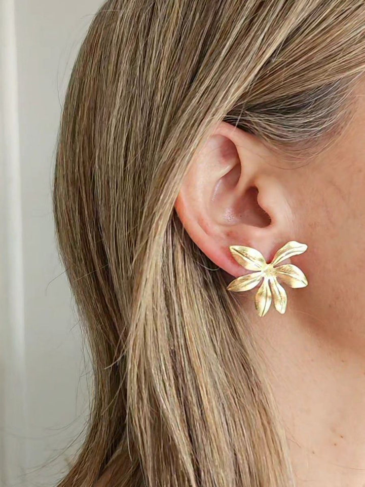 Estos aros son una real Belleza!!! Estas flores doradas son perfectas para esos momentos especiales donde quieras brillar! Balñadas en oro.