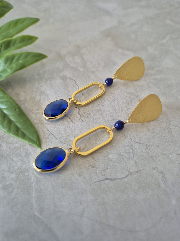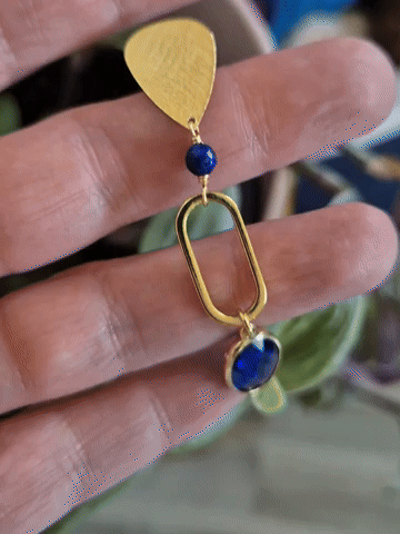El equilibrio perfecto entre elegancia y color. Estos aros combinan la intensidad del azul con el brillo del baño de oro, logrando ese toque moderno que levanta cualquier look de día o de noche