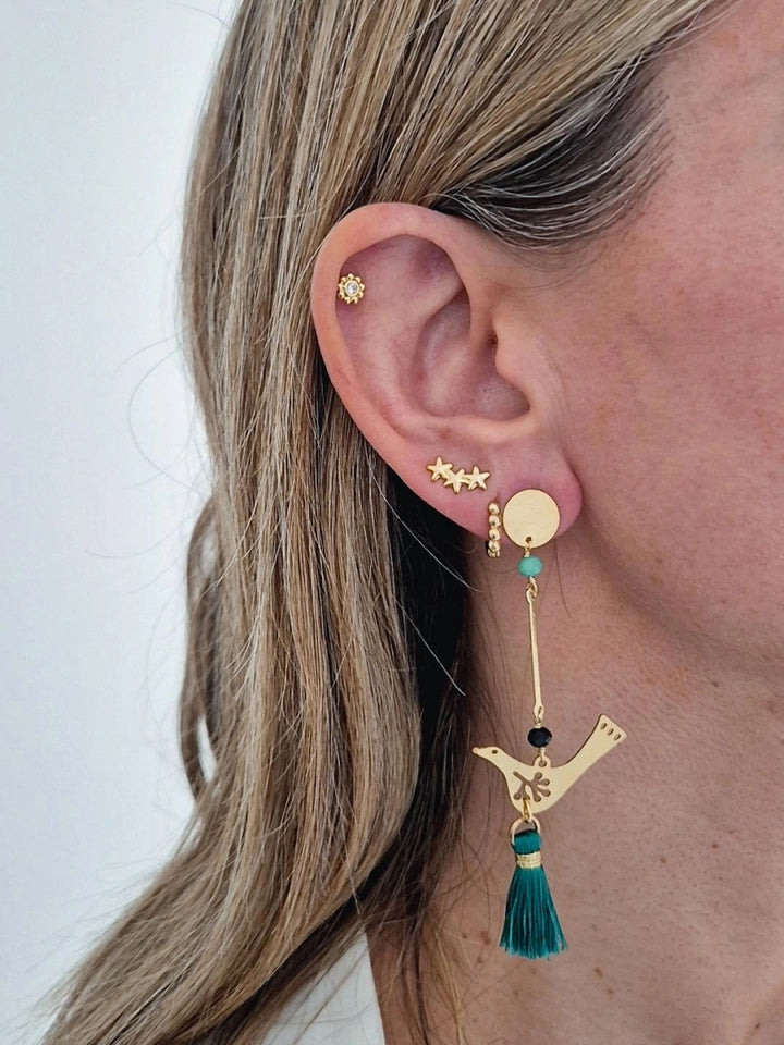 Alegría, movimiento y buena vibra. Con su diseño de pajarito bañado en oro, representan libertad, renovación y ese impulso de volar sin miedo.