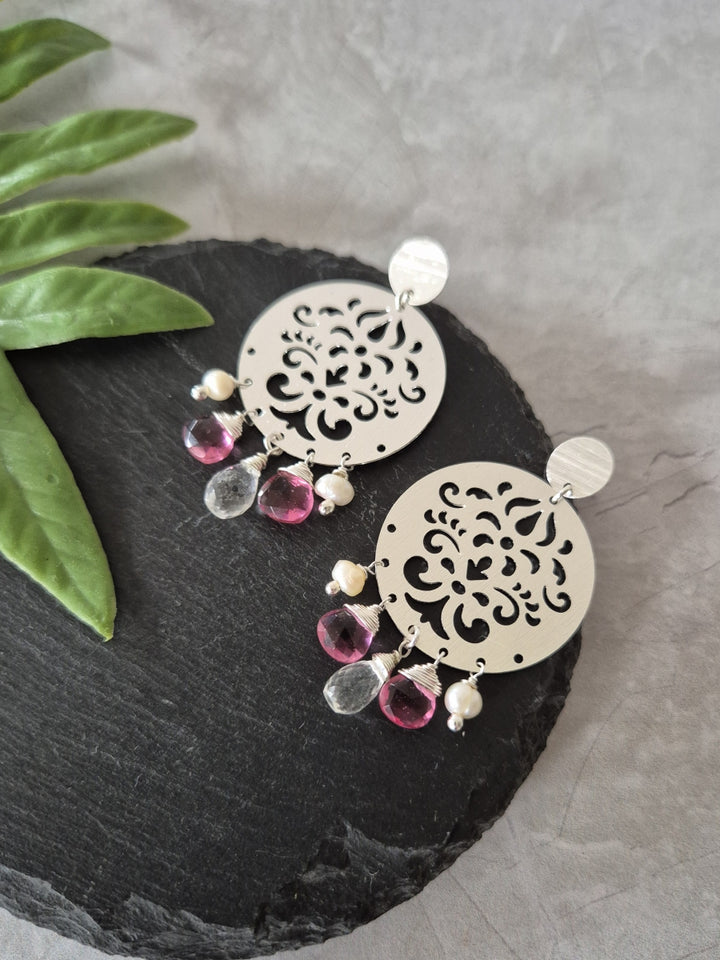 Una explosión de feminidad y movimiento. Estos aros de mandala calados y bañados en plata logran un estilo que no pasa desapercibido.