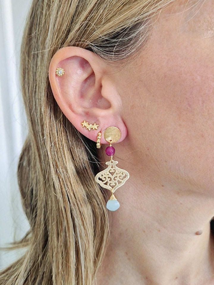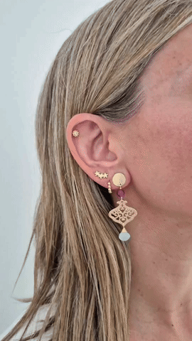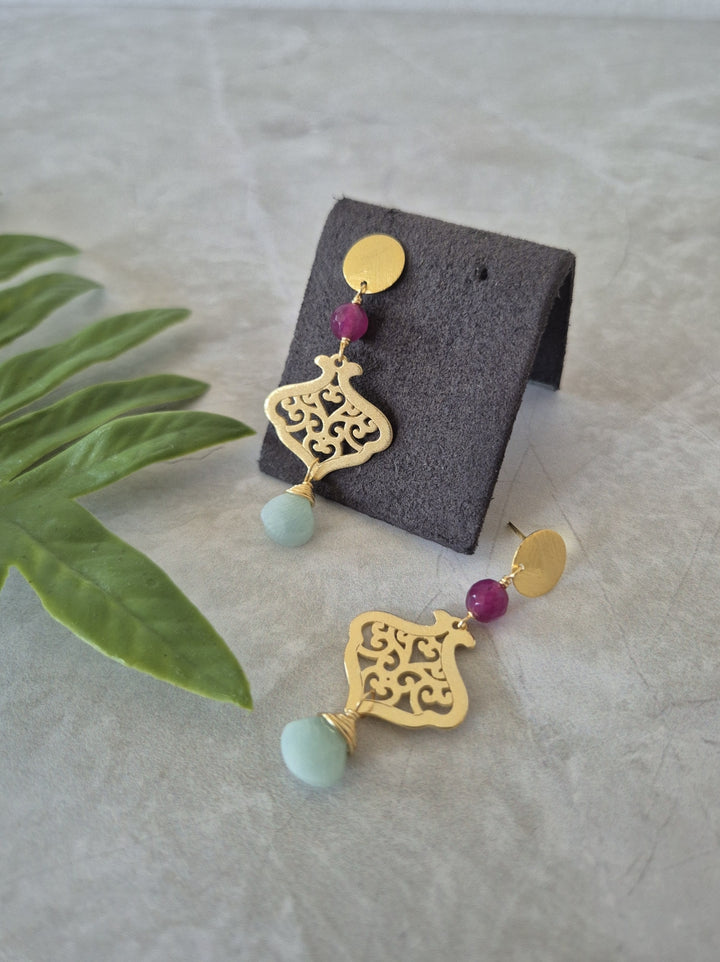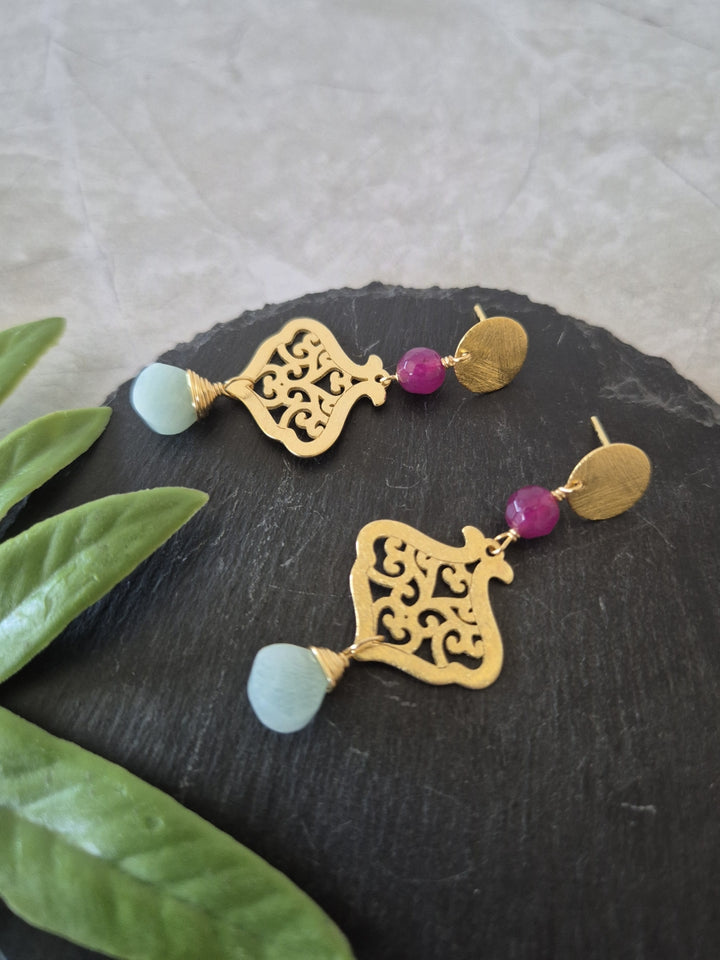 Los Aros Salma combinan la profundidad de la ágata morada con la serenidad de la piedra natural Amazonita.