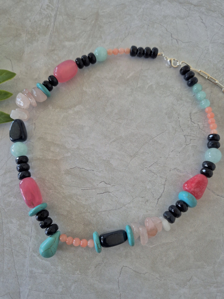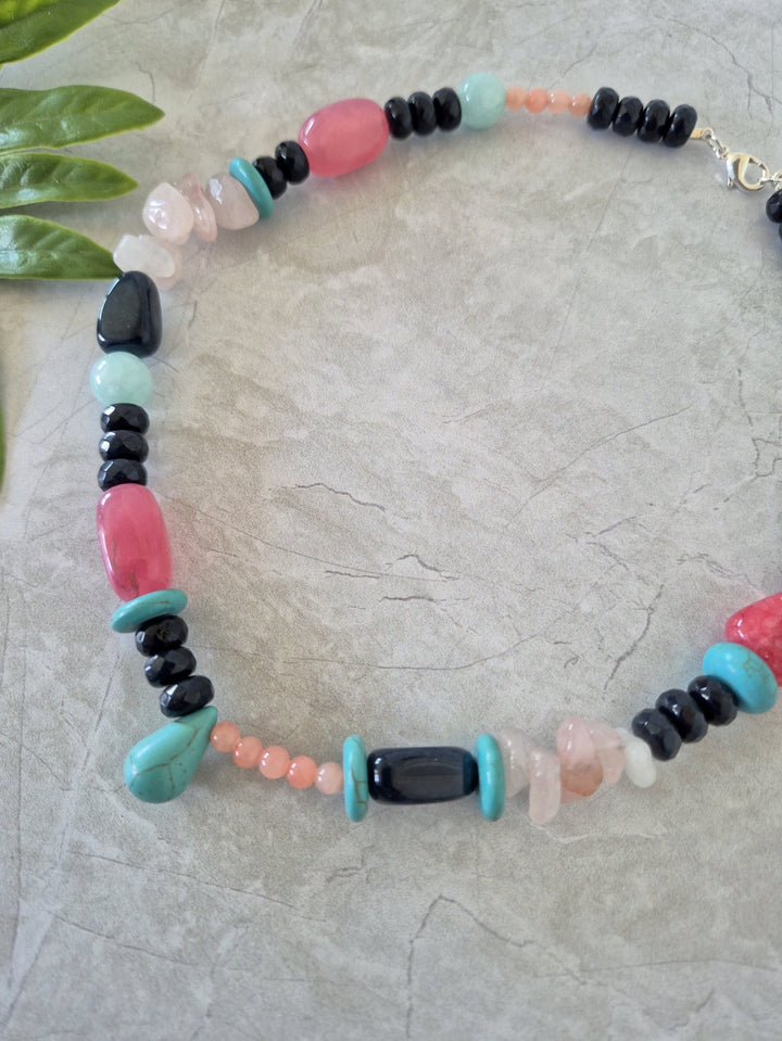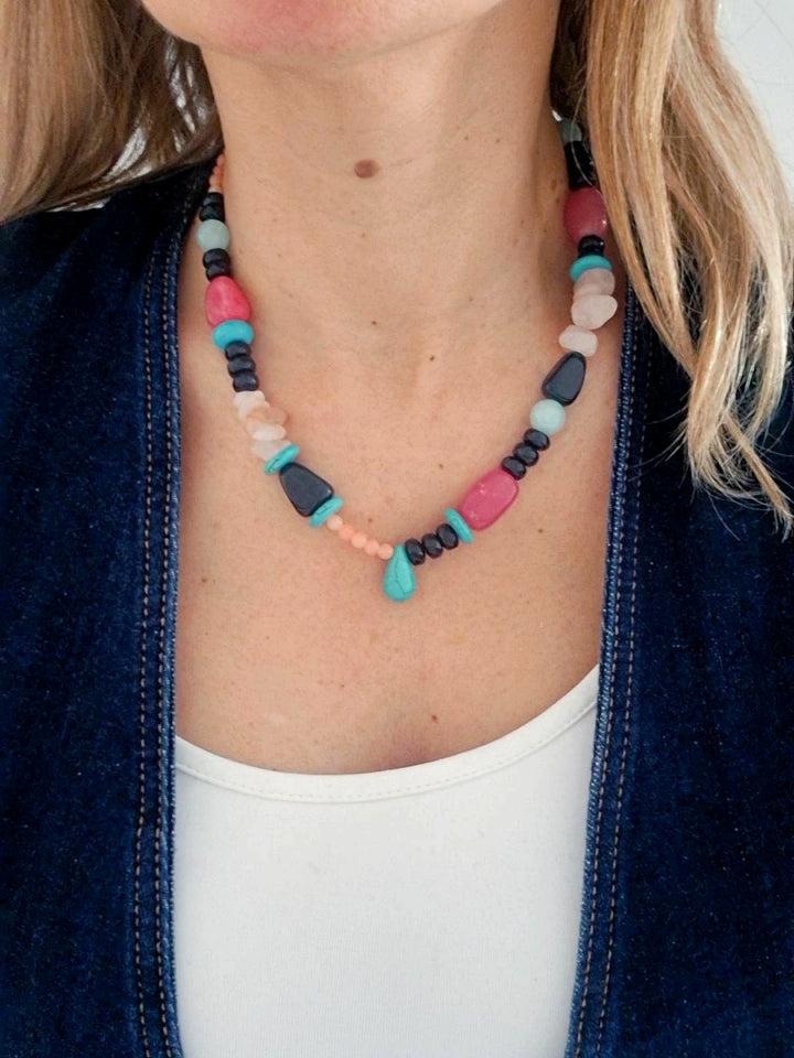Un mix armónico entre la fuerza del azul, la ternura del rosa y el toque boho del turquesa. Este collar tiene ese "no sé qué" que levanta cualquier look sin esfuerzo.