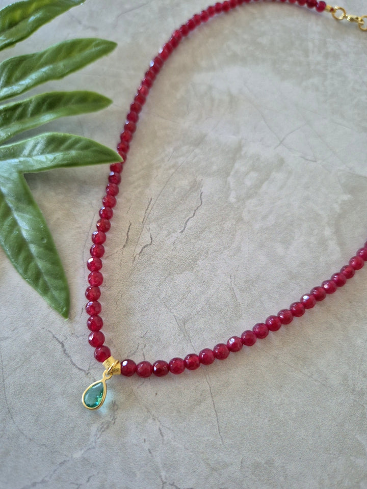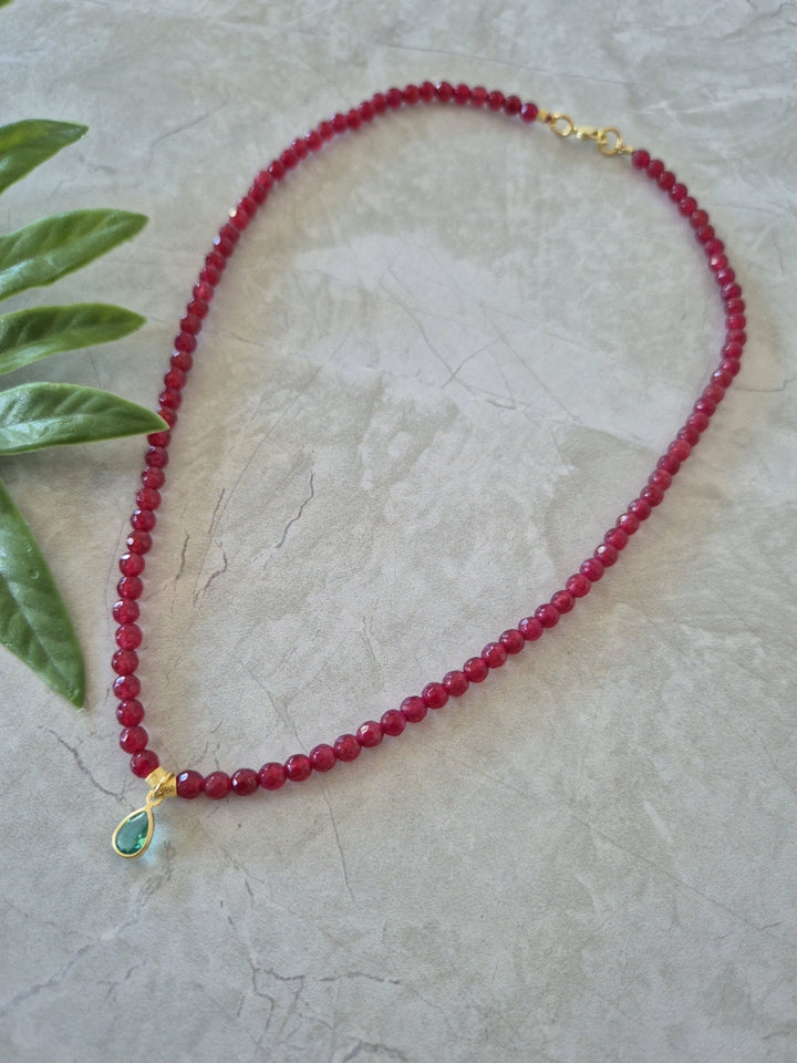 El collar Uma Burdeo está hecho con pequeñas ágatas facetadas en tono marsala y un cristal turquesa al centro que le da un contraste increíble. Mide 42 cm y tiene terminaciones bañadas en oro. Es corto, cómodo y perfecto para usar todos los días o darle un toque especial a un look simple.